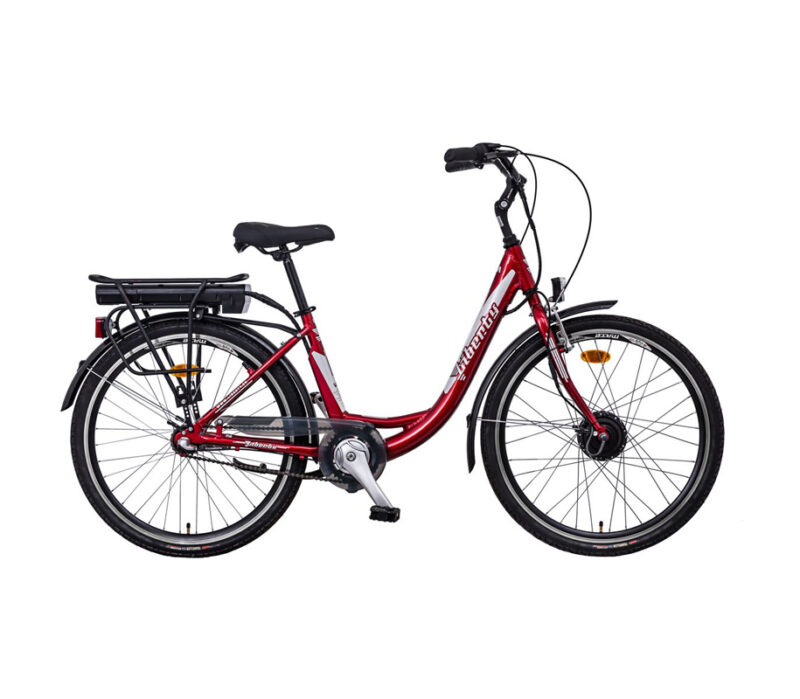 Elektrický mestský bicykel s 26″ kolesami, v trojrýchlostnom prevedení, s motorom v prednom náboji, základným akumulátorom 36V/10,4Ah v zadnom nosiči, LCD displejom, tromi stupňami podpory a kompletnou výbavou pre cestnú premávku. Bicykel vyhovuje norme STN EN 15 194: 2017, tzn. že je možné ho prevádzkovať na pozemných komunikáciach bez potreby vodičského oprávnenia a akýchkoľvek iných dokladov.